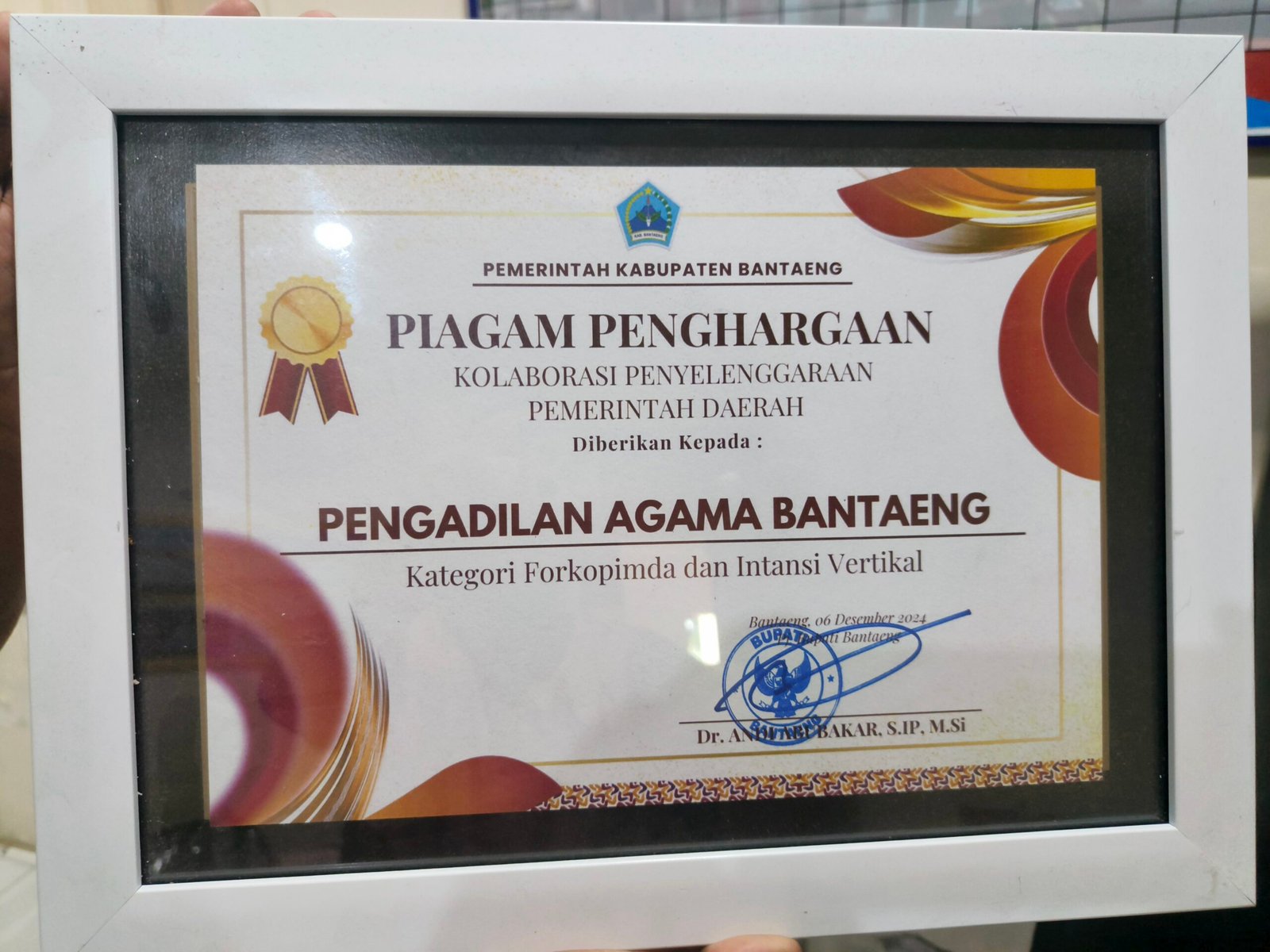 Piagam Penghargaan Kolabiorasi Penyelenggaraan Pemerintah Daerah Kabupaten Bantaeng Kategori Forkopimda dan Instansi Vertikal
