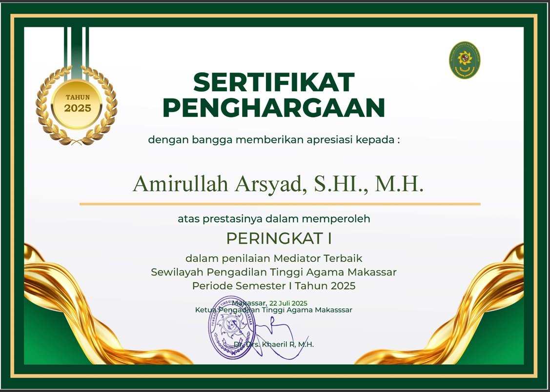 Peringkat 1 Mediator Terbaik Semester 1 2025